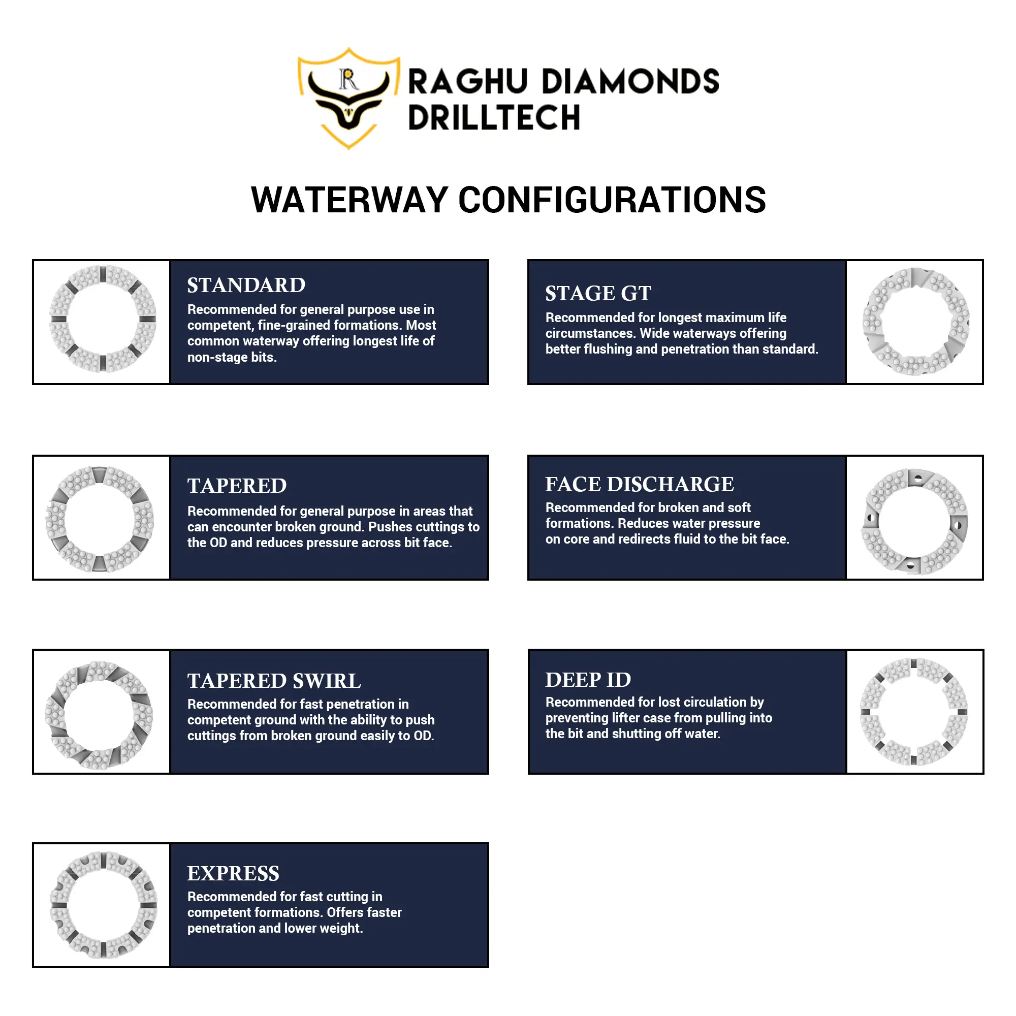 We also provide a selection of profile types and bit series, tailored for specific hardness levels: